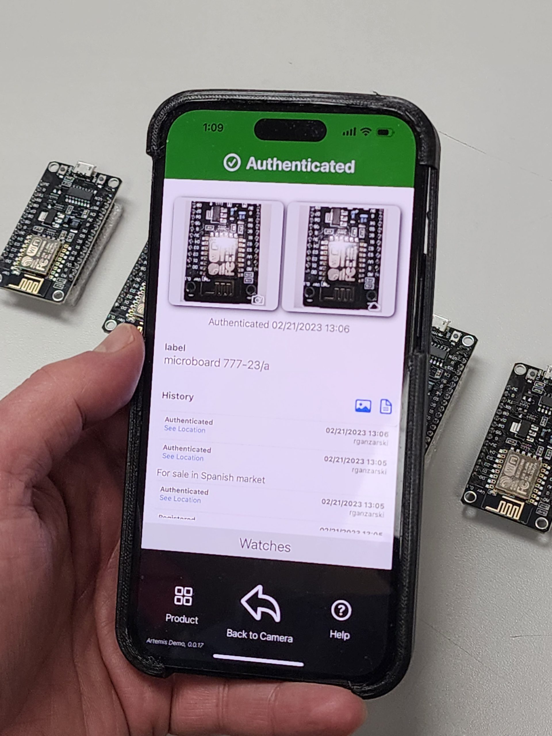 You, your customer, your distributer, your quality control, or anyone you choose, can take a picture of the item and identify it, authenticate it, and trace it. Simple.